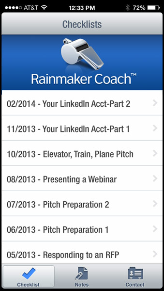 The current version of Rainmaker Coach™ includes numerous how-to and best practices checklists including: